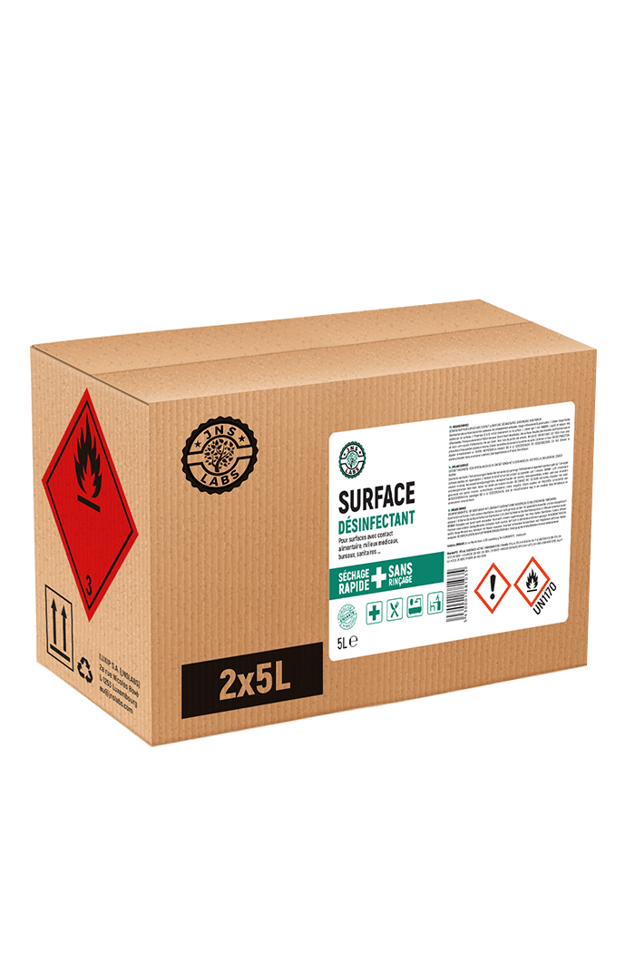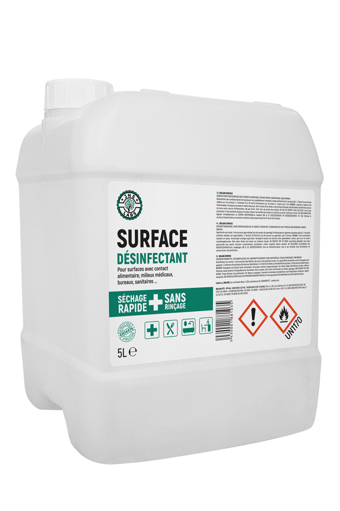 JNSLABS SURFACE Disinfectant Spray is a natural disinfectant for use on all types of surfaces, including food contact surfaces. The antibacterial action of the natural ethanol formula both disinfects and refreshes. The ingredients are 99.8% natural and contain no animal substances. Ideal for disinfecting doorknobs, phones, computer keyboards, tables or food contact surfaces in kitchens. For professional and public use. Bactericide according to standard EN1276, Virucide according to EN14476.
